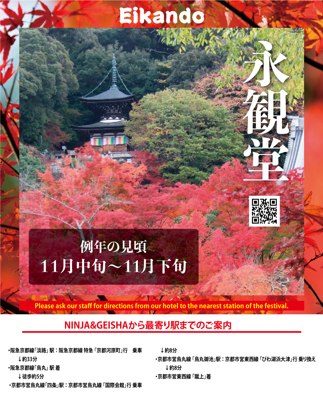 NINJA&GEISHAから永観堂への行き方をご案内いたします!