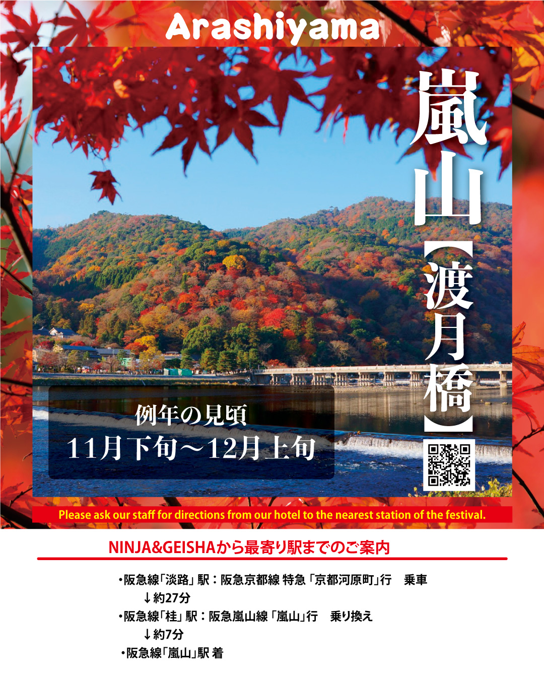 NINJA&GEISHAから嵐山(渡月橋)への行き方をご案内いたします!